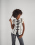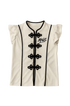 light-weight japanese blouse / traditional closure with black cord knots / size XS / cream-white base with black contrast lines