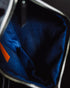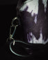 100% leather / velvet-lined interior / detachable and adjustable cord strap / all-over print